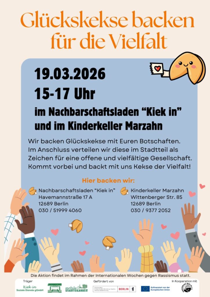 Die Aktion findet zeitgleich an 2 Orten statt: Im Nachbarschaftsladen „Kiek in“ sowie im Kinderkeller Marzahn.